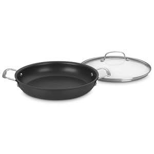Enhance your existing Chef's Classic set with this versatile, 12-inch everyday pan, or give it as a gift to someone whose kitchen space is limited. You can cook practically anything in this superb specialty piece. Simmer soup, fry chicken, stir-fry vegetables, cook pancakes, and even bake casseroles. The two loop-style, riveted stainless-steel handles make the shape more compact for fitting in an oven, and the domed glass lid conveniently lets you monitor what's cooking. Chef's Classic cookware handsomely serves at the table, too. Cuisinart constructs this pan of hard-anodized aluminum, which is even stronger than stainless steel, with an encapsulated pure aluminum core for quick, even heating. The interior features Cuisinart's Quantanium nonstick finish, a high-quality, long-lasting finish internally reinforced with titanium. Little oil or butter is needed when cooking on this ultra-smooth surface, and low to medium heat is recommended, along with non-metal utensils. The piece is oven-safe to 500 degrees F and should be washed only by hand. Cuisinart covers this pan with a lifetime limited warranty against defects. --Ann Bieri